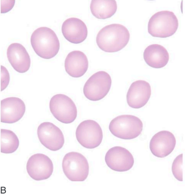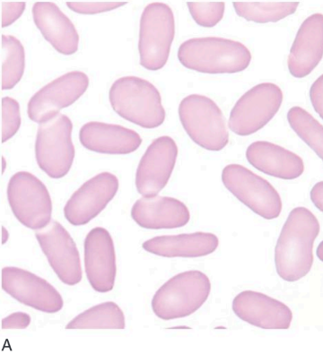 (b) Blood ilm of a patient with hereditary ovalocytes (Bain, 2015)